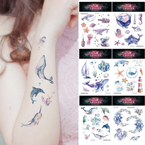 Sea Turtle Whale Jellyfish Temporary Tattoos Ocean Wave Body Art Arm Fake Tatoo Ebay